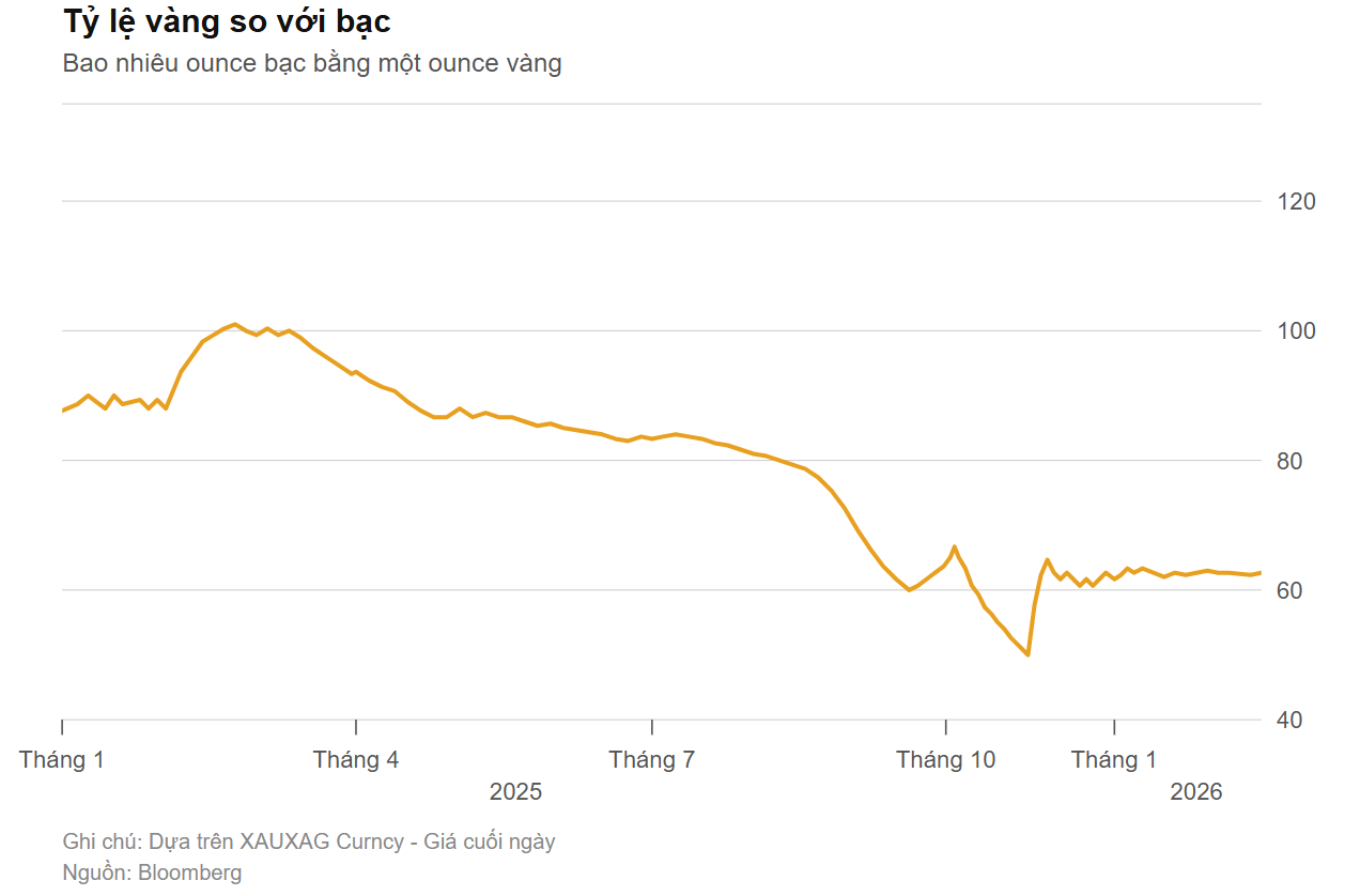 Đợt tăng gần đây của bạc mang tính lịch sử về khối lượng giao dịch. Từ khoảng 29 USD mỗi ounce đầu tháng 1.2025, giá bạc tăng vọt, vượt 70 USD vào cuối năm và có lúc đạt hơn 120 USD vào tháng 1.2026 trước khi hạ nhiệt.
